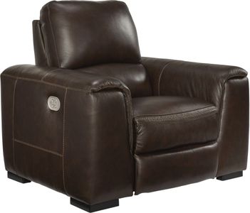 Impressive in scale while keeping an air of refinement, this power recliner stuns with a combination of soft, supple leather and perfectly matched faux leather upholstery in walnut. Sink into the seating area and cater to your comfort with one-touch power reclining and an adjustable headrest.Read More