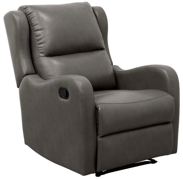 Whether used as a stand-alone piece or as a complement to your existing living room seating, the Durant Collection provides a welcoming seat to your home’s décor. The streamlined profile of the reclining chair is covered in gray faux leather upholstery.Read More