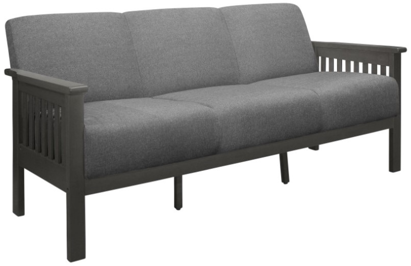Designed with inspiration from the Arts & Crafts movement, the Lewiston collection will be a classic addition to your home’s décor. The sofa's transitionally styled legs and vertical slat-supported wood arms are finished in an antique gray, providing complementing contrast to the gray linen-like fabric covering.Read More