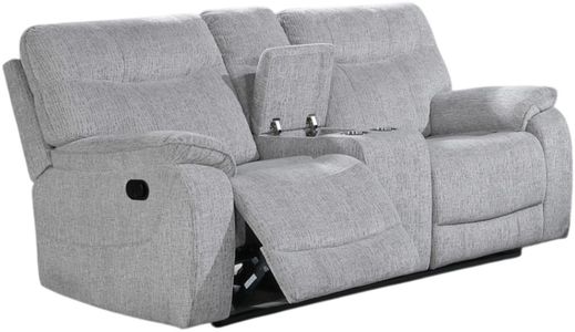 Upholstered in luxuriously soft, easy-care 100% polyester mist gray fabric, it provides a cozy and elegant seating experience. Designed for lasting comfort, the supportive seating combines resilient springs and plush foam cushions that maintain their shape over time. Effortlessly recline into generously cushioned seats, offering ultimate relaxation with minimal effort. For added convenience, the built-in center console features cupholders and a spacious storage compartment to keep essentials within reach. Integrated USB-a and USB-c charging ports ensure your devices stay powered, blending modern convenience with luxurious comfort. The Chablis reclining console loveseat is the perfect choice for creating a stylish and inviting living area.