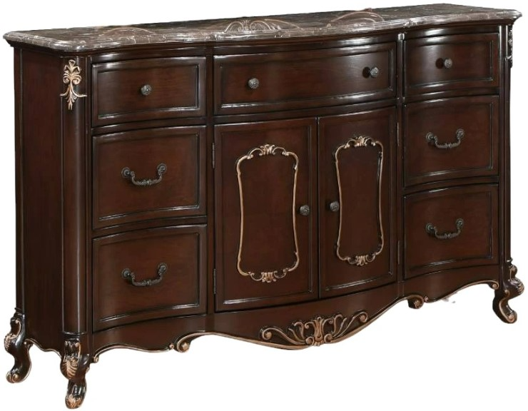 The Constantine Marble Top 6 Drawer Dresser by Royal Classics offers timeless elegance and exceptional craftsmanship. This large dresser, finished in rich Cherry, is crafted from a blend of Solid Pine and Fancy Face Birch Veneers, ensuring heirloom quality and long-lasting beauty.Read More