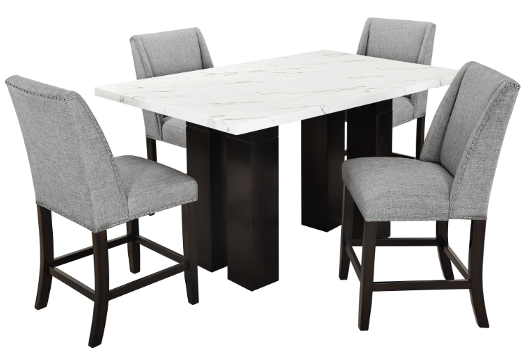 Includes: 1 dining table and 4 counter chair