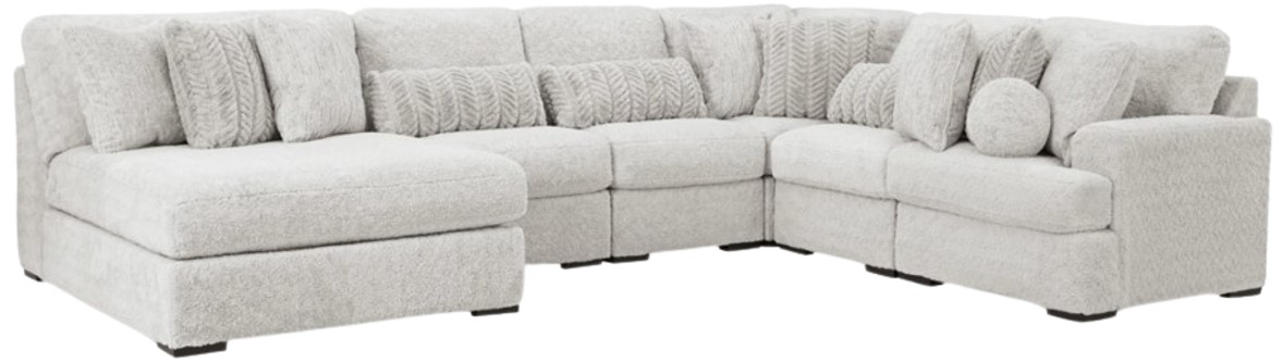 Includes 6 Modular Pieces: Oversized armless chaise, 3 armless chairs, right-arm facing corner chair and wedge