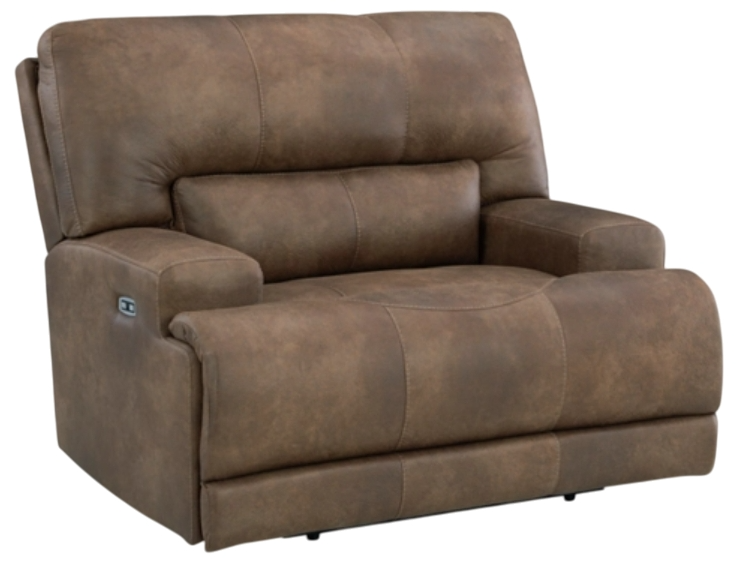 Expansive and elegant, this power recliner makes a sizable style statement. Its large scale enhances the luxe look and magnifies the beauty of faux leather in an earth tone, punctuated with jumbo stitching. One-touch power adjustable headrests mean infinite ways to recline in stylish comfort. USB charging completes the experience.Read More