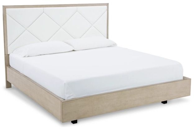 This king panel bed puts the dream of a modern contemporary bedroom retreat beautifully within budget. The bisque finish over ash veneer, and a white faux leather headboard adds pizzazz to any bedroom. It’s a simply stunning way to achieve the bedroom of your dreams.Read More